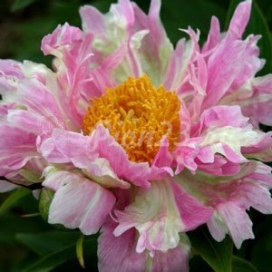 Пион Pink Spritzer (Пинк Спритцер) Krekler / R.Klehm, 2001г. США. Цветок полу-махровый, кактусовидный. Вперемежку розовые и светло-зелёные лепестки. Н=70см. Среднего срока цветения.