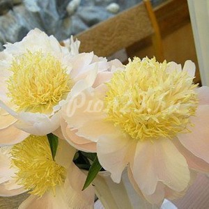 Пион Плейнсмен (Paeonia Plainsman) – сорт американской селекции серии «Коллекционер»; лепестки белые с легким румянцем, тычинки желтые.