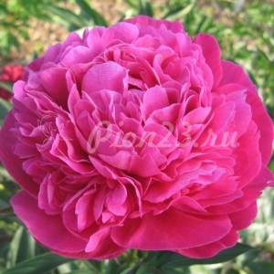 Махровый. Цветок диаметром 20 см, прекрасной бокаловидной формы, ярко-красный с сиреневым отливом. Лепестки крупные, округлые. За наружными лепестками видны ярко-жёлтые тычинки. Форма и окраска варьируют по годам. Куст компактный. Высота 90-100 см. Стебли толстые прочные. Листья крупные тёмно-зелёные. Цветение обильное. Жизнестойкий, очень мощный сорт, великолепное украшение сада, надёжная срезка. Среднего срока цветения. В 1957 г. сорт награждён золотой медалью американского общества пиона.