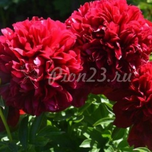 Пион молочноцветковый "Ред Суприм" (Paeonia lactiflora Red Supreme) - многолетнее травянистое растение высотой 100-120 см. Крупные плотные махровые розовидные цветы диаметром до 15 см. По мере отцветания - цветок нарастает вверх, приобретая башневидную форму. Стебли прочные, изгибаются. Листья среднего размера, зеленые. Аромат умеренный. Цветение обильное в июне-июле.
