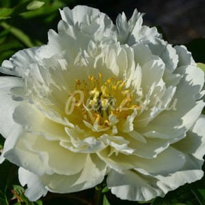 Полумахровый. Очень редкий цвет для Ито-гибридов – белый с лёгкими фиолетовыми мазками в основании лепестков и кольцом кремовых тычинок. Куст очень компактный, высотой 75 см. Стебли сильные. Раннего срока цветения.